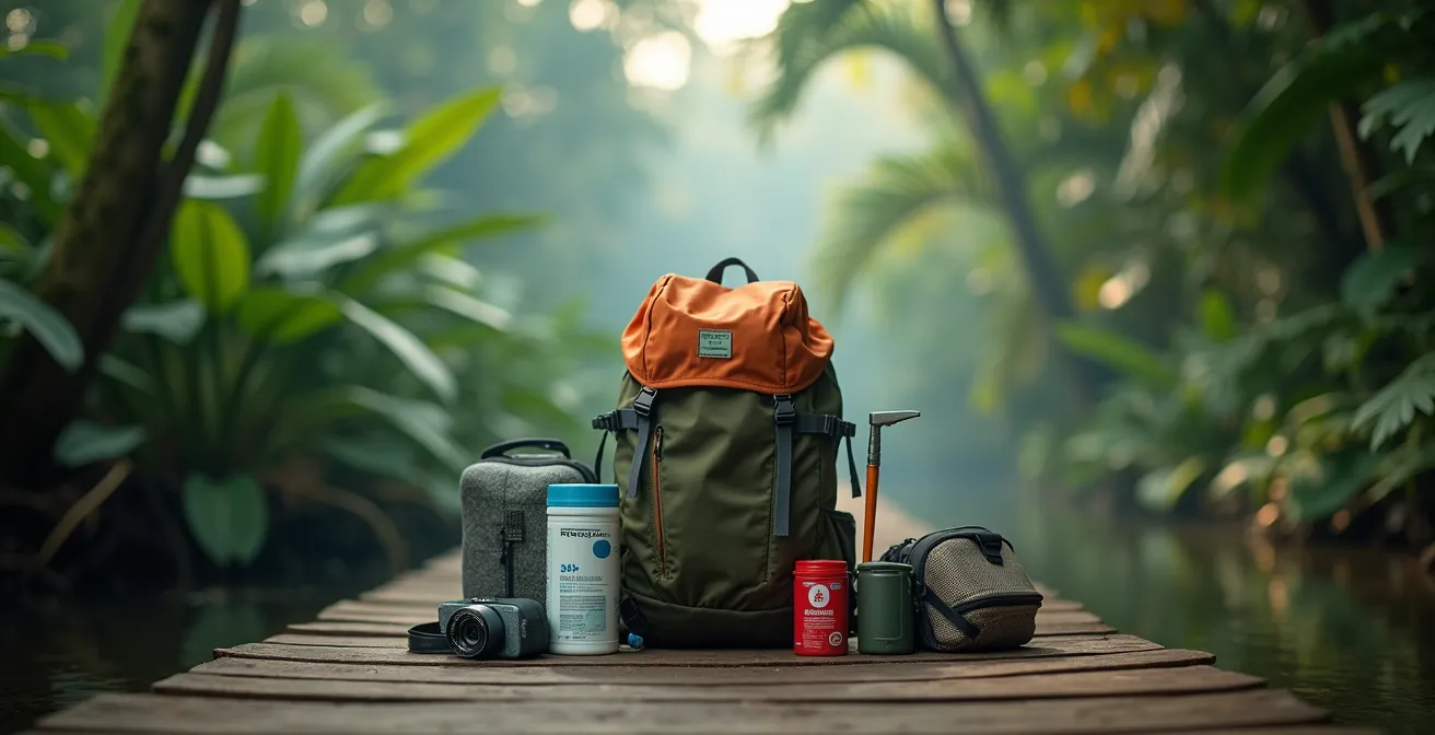 L’idea di un trekking nella giungla evoca immagini potenti: vegetazione lussureggiante, suoni di animali esotici e il senso di un’avventura primordiale. Per chi, come voi, è un viaggiatore avventuroso che pianifica la prima incursione ai tropici, questa attrazione è irresistibile. Tuttavia, il passaggio dal sogno alla realtà richiede una preparazione meticolosa, che va ben oltre il semplice “portare un k-way e un repellente”. Molti si concentrano su cosa mettere nello zaino, finendo per seguire liste generiche che trascurano le vere minacce di un ambiente tanto affascinante quanto ostile.
